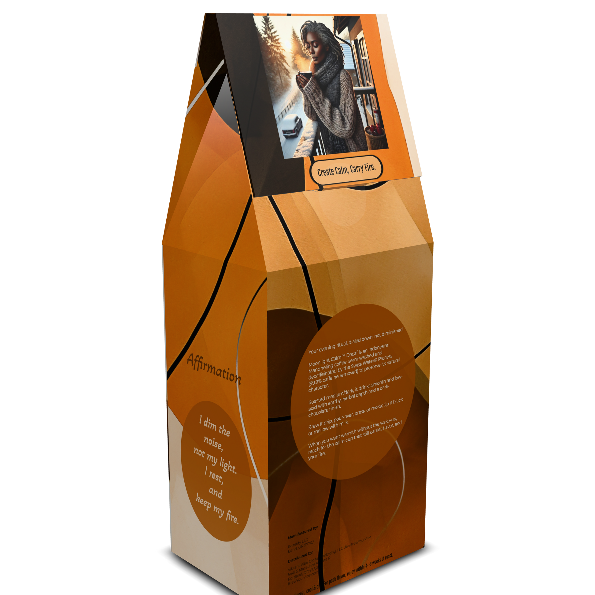 MOONLIGHT CALM™ - Decaf -Medium Dark Roast Coffee (Ground) - Tasting Notes: Earthy • Herbal Notes • Dark Chocolate - Origin/Region: Indonesia - Mandheling