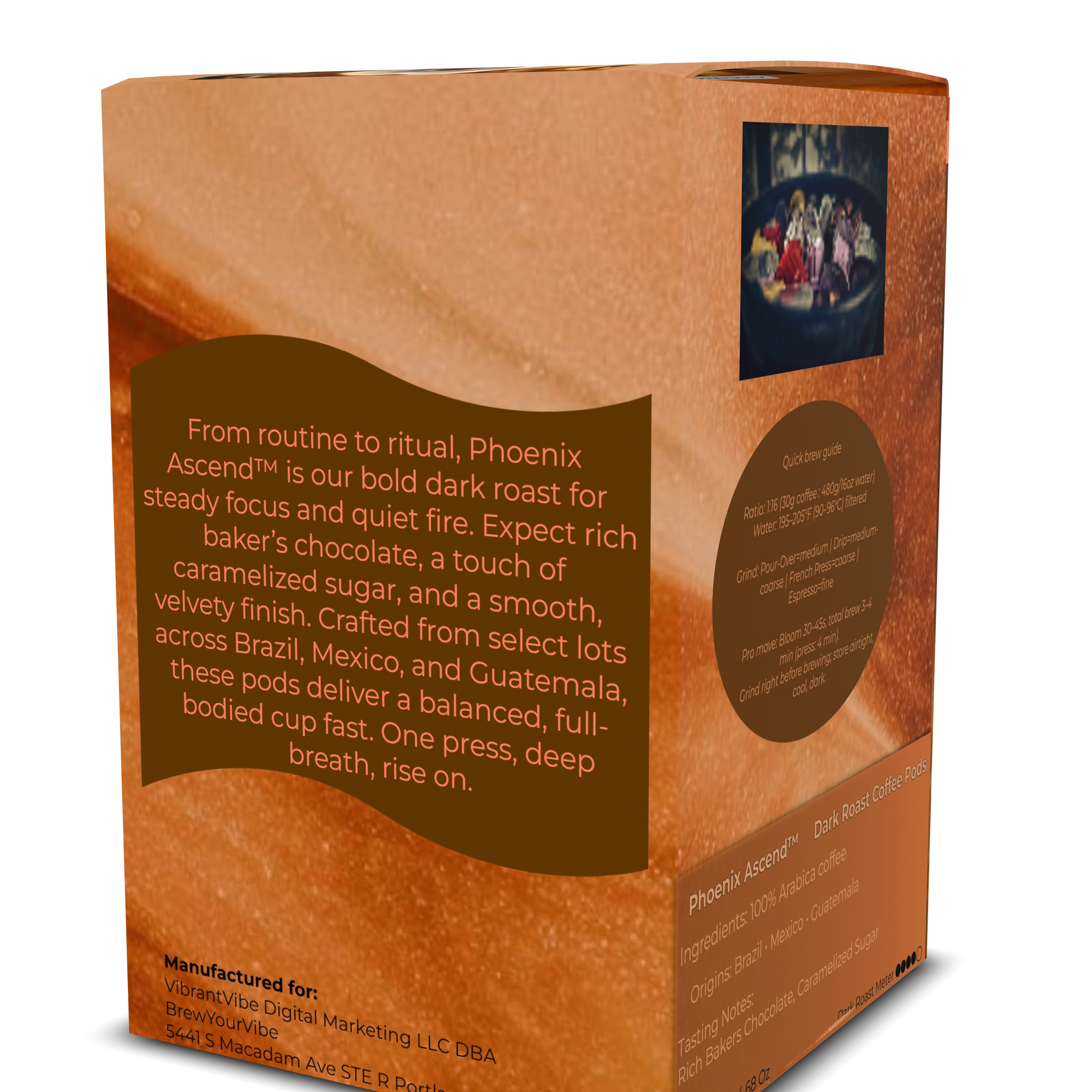 PHOENIX ASCEND™ — Dark Roast Coffee Pods (12 Ct) - Tasting Notes: Rich Bakers Chocolate • Caramelized Sugar - Origins: Brazil • Mexico • Guatemala